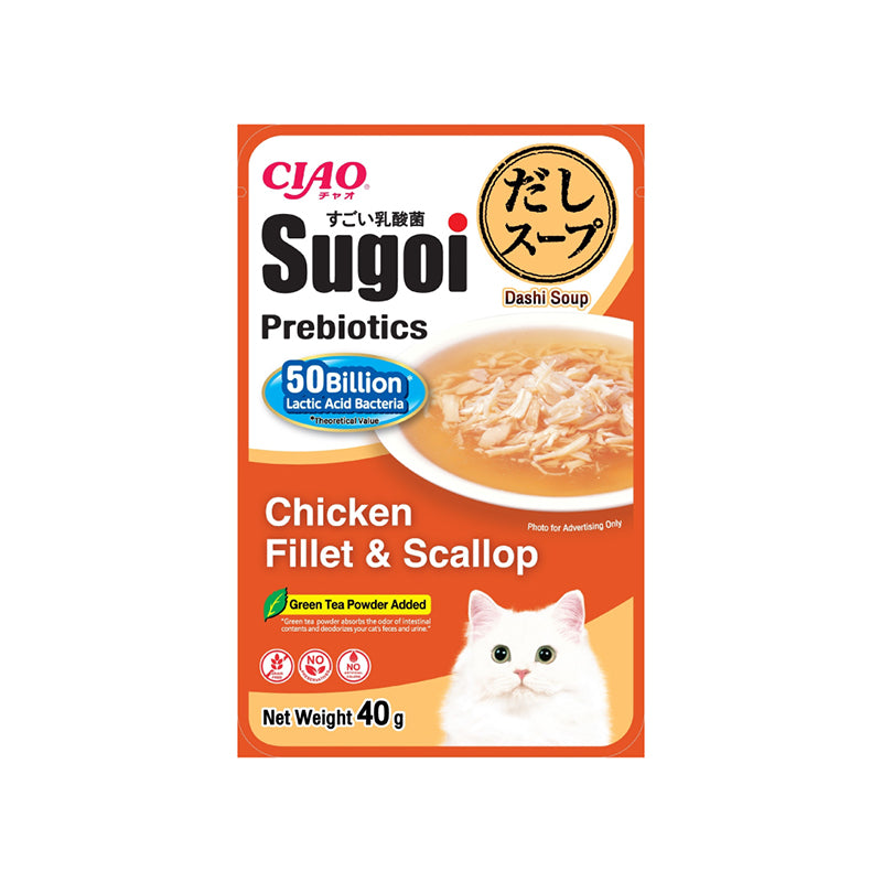 Ciao Sugoi Dashi Soup Pouch Chicken Fillet Plus Prebiotics Cat Treats 40g