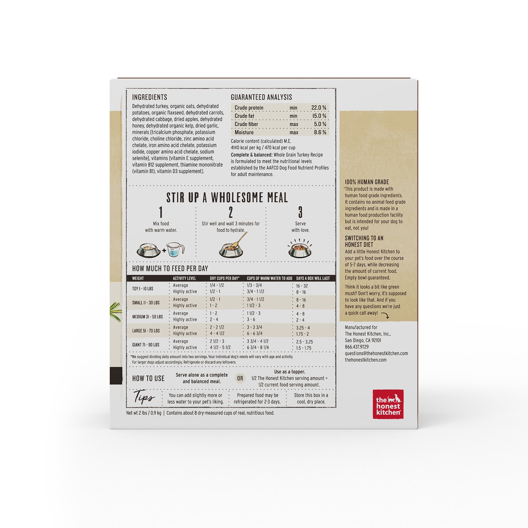 The Honest Kitchen Dehydrated Whole Grain Turkey Dog Food 2lbs